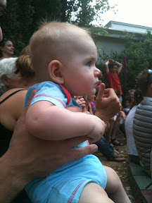 Zoveel eendjes hadden we nog nooit gezien, dus eerst keek je heel stil en geconcentreerd naar al die waggelende, ruziemakende, snaterende eenden. Maar al snel wilde je het wel van dichterbij bekijken.