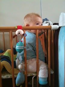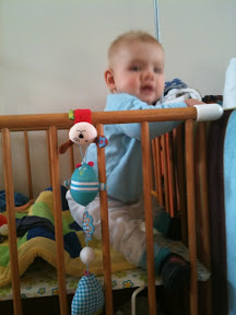 ik dacht laatst: laten we die babygym maar eens opruimen, de tijd dat je er onder lag op je rug en tegen de belletjes mepte is toch echt voorbij. Maar inmiddels heb je zelf een nieuwe toepassing gevonden voor dit speelgoed. Je gebruikt het nu als looprek!